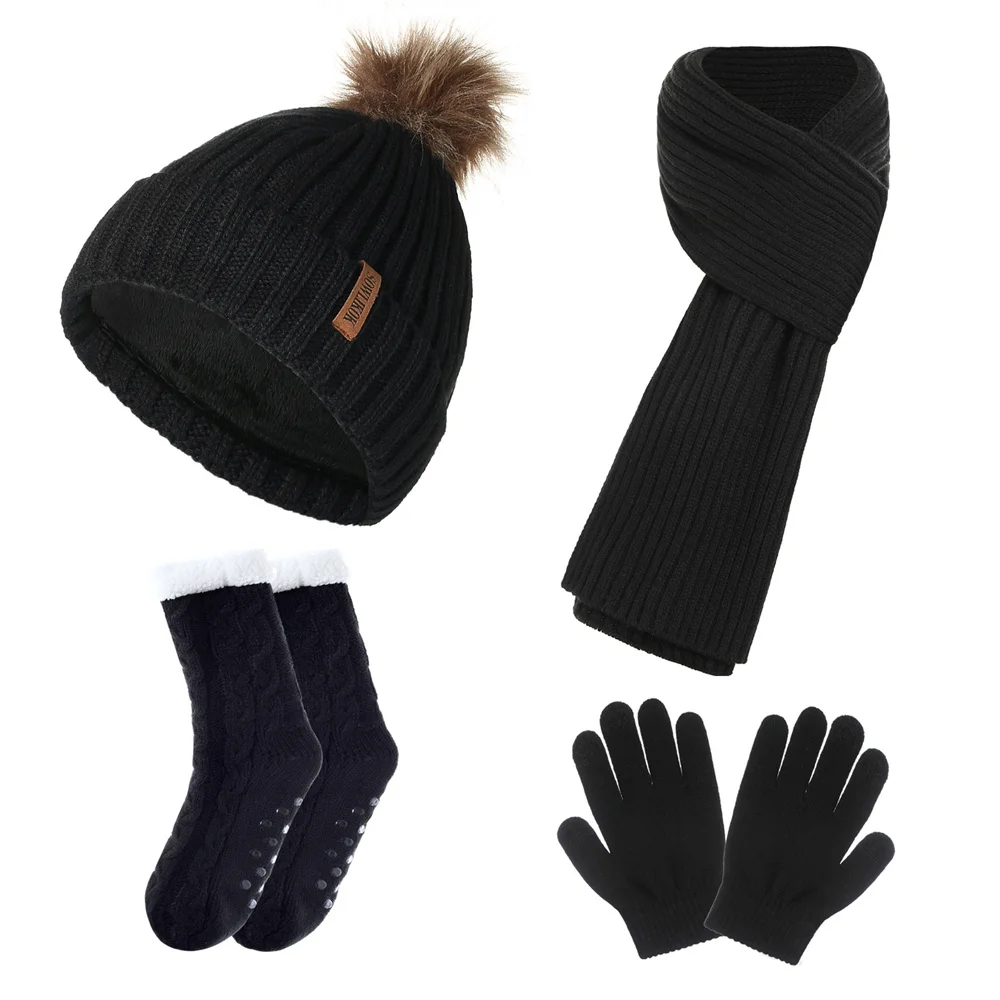 Product name: Women's fur ball hat, scarf, scarf, gloves and socks, 4-piece set
